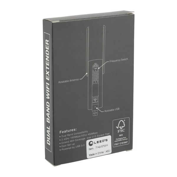 - Dual band WiFi: 2.4GHz extends up to 20m, 5.0GHz extends up to 10m