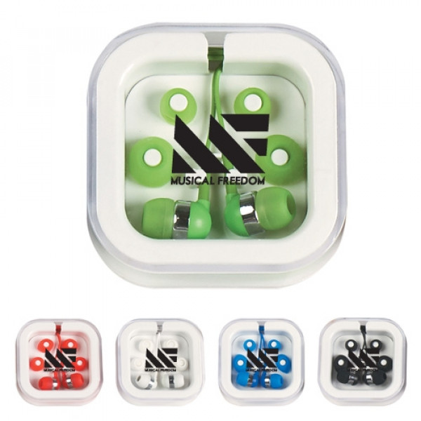 ::Interchangeable Ear Bud Covers Come In White, Blue And Pink::Protective Plastic Travel Case::Plugs Into Most Audio Jacks