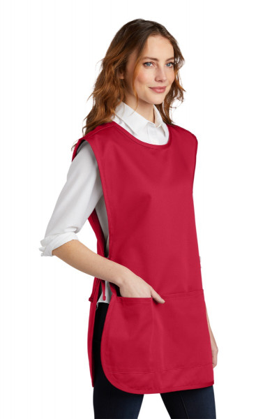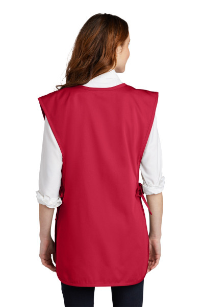 This easy-care cobbler apron is designed to provide full coverage and functionality for various professional settings, such as hospitality, culinary, and service industries. Its stain-release finish ensures a clean and polished appearance throughout your shift.