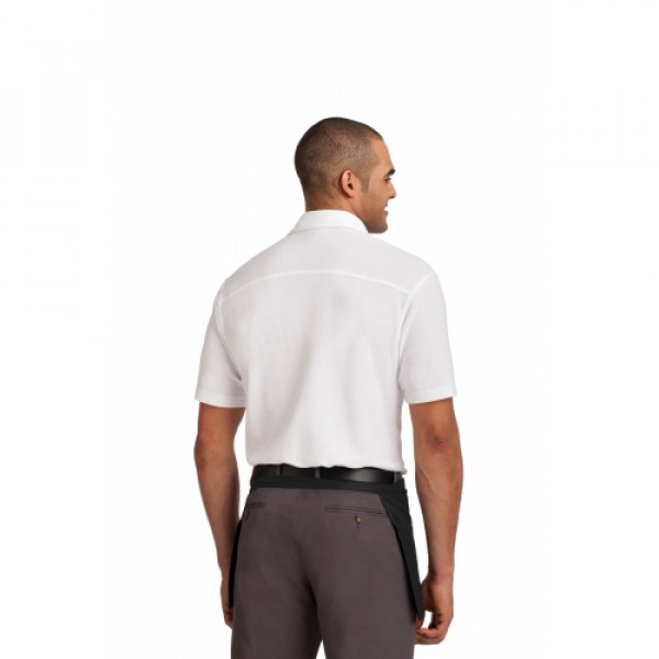The stain-release protection and easy care blend make this apron ready for the workplace.::8-ounce, 65/35 poly/cotton twill::Three front pockets::23.75"w x 11.25"l