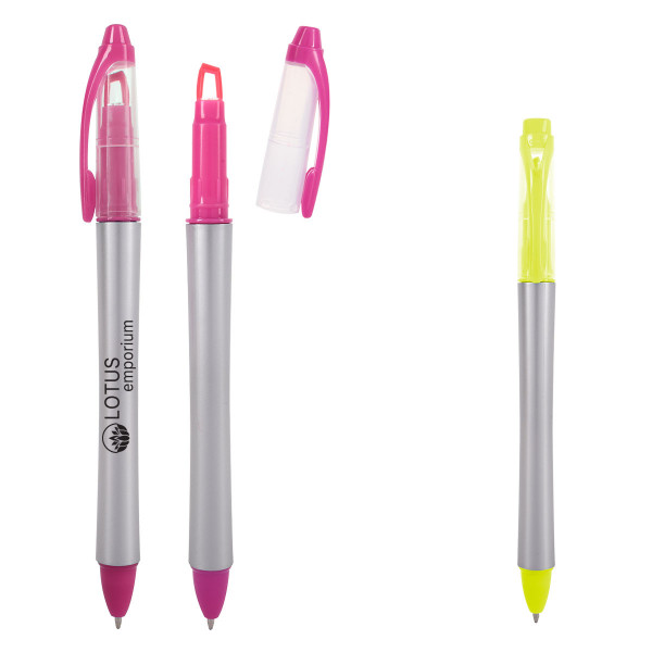 ::Twist Action::Ballpoint Pen With Black Ink::See-Through Chisel Tip Highlighter