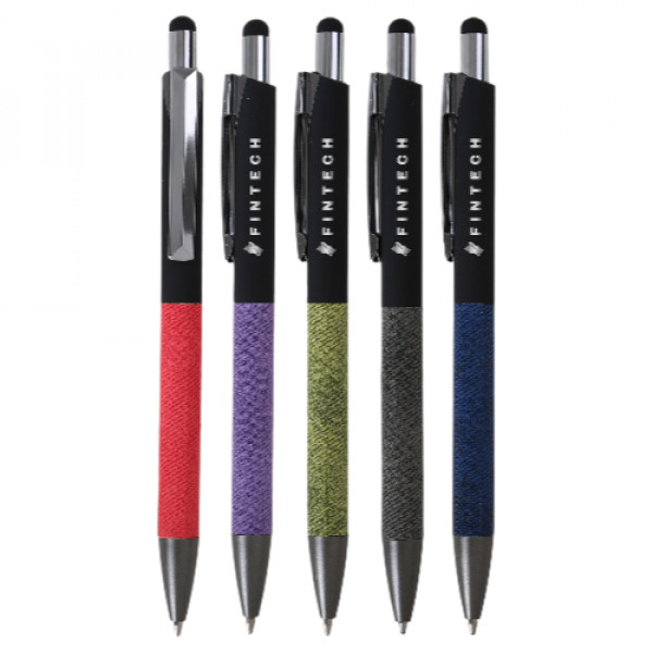 The EcoMetal Denim Stylus Pen seamlessly blends eco-conscious materials with modern design, making it an excellent choice for sustainable branding. Crafted from recycled aluminum and paper, its matte soft-touch upper barrel exudes sophistication, while the lower barrel features a denim-textured print in fashionable colors. Accented with gunmetal and chrome trim, this stylus pen not only offers a premium writing experience but also serves as a stylish promotional product that can be custom decorated to showcase your brand effectively