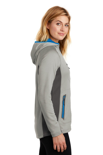 This sporty midweight jacket pairs smooth-faced fleece with stretch side panels for comfort during active adventures.