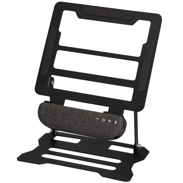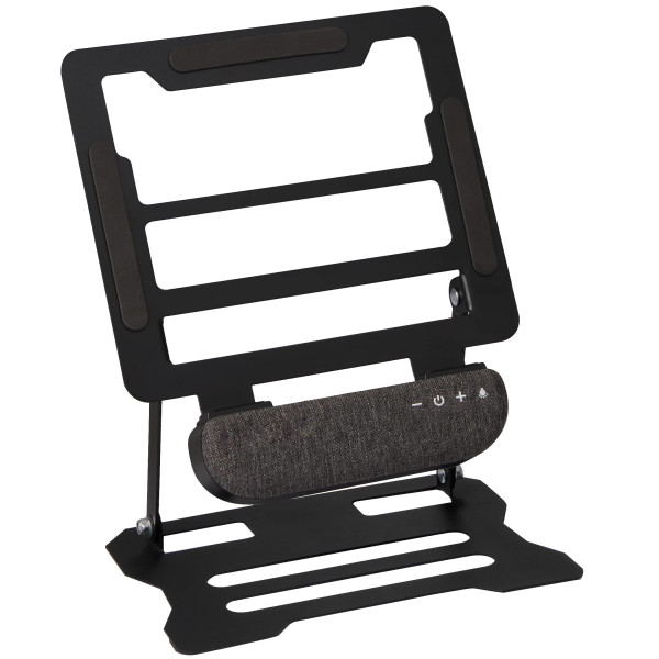 The Elevate Laptop Stand and Bluetooth Speaker is the ultimate workspace companion, combining ergonomic support and high-quality audio in one sleek design. Its adjustable stand lifts laptops up to 16” for improved posture, while the removable Bluetooth speaker offers six hours of playback and hands-free calling. This multi-functional item can be custom branded, making it a standout promotional product for any modern professional.