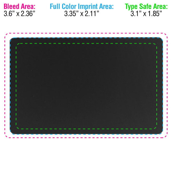 - Large imprint area: Front 3.12″ × 1.875″ (type‑safe) / Back 2.05″ × 1.875″