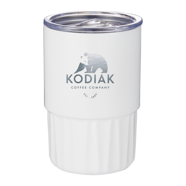 An elegant glass-like prism effect inside the tumbler, enhanced by the see-through lid with same prismatic design evokes the facets of a flawless diamond. This unique tumbler allows you to enjoy all types of beverages, from liquor to coffee, or even an ice cream sundae! Double-wall vacuum insulation with copper plating ensures that your favorite craft drink, latte or mocktail stays ice cold until the very last sip. The construction also prevents condensation on the outside of the tumbler. On-trend coating. Wide opening for easy filling, cleaning and adding ice. Fits most standard car cup holders. Hand wash only. 16oz.