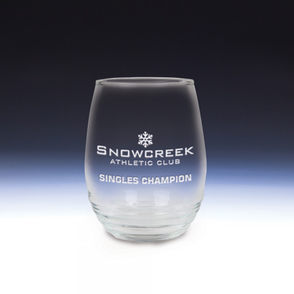 Etched stemless wine glasses make for a functional yet sophisticated award.