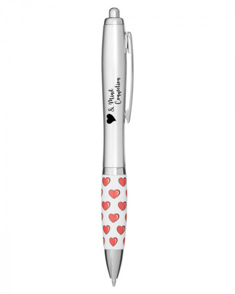 - Retractable curvy plastic barrel ballpoint pen with heart/healthcare theme stock art grip