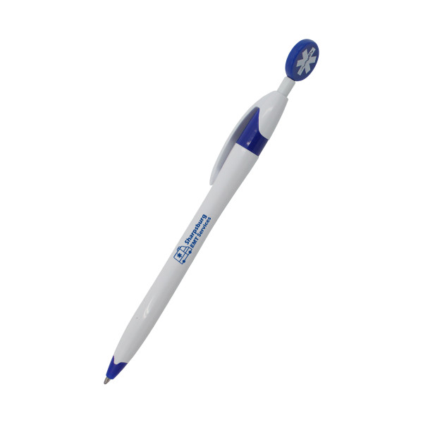 This playful pen features an EMT Star of Life topper with blue accents, adding a fun, professional touch to everyday writing. The pen can be custom branded or decorated with a one-color imprint on the barrel or clip, making it an ideal promotional product for healthcare events, giveaways, or corporate branding.