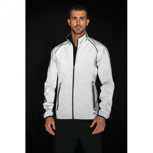 Designed for day-into-night active pursuits like running & cycling. :: 100% poly shell with mesh lining:: Reflective OGIO Endurance heat transfer label for tag-free comfort:: Zip-through cadet collar:: Reverse coil zippers with locking pulls:: Contrast stacked O heat transfer at center back:: Raglan sleeves:: Elastic cuffs:: Front zippered pockets with heat transfer welding details:: Embroidery access pocket:: Contrast O Endurance heat transfer at back right seam:: Slight drop tail hem with drawcord and toggle for adjustability:: Contrast O heat transfer at front, left hem