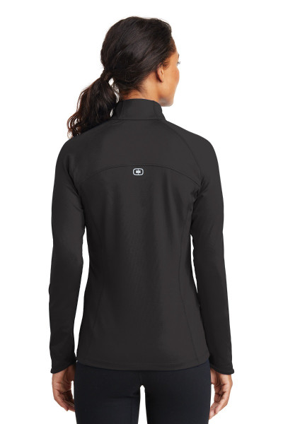 Stay cool, comfortable, and stylish with the OGIO ENDURANCE Ladies Radius Full-Zip. Designed with stay-cool wicking technology and a lightly brushed interior, it offers stretch and layerable warmth. Flatlock seams ensure all-day comfort, while reflective details on the sleeves, back, and hem enhance visibility. Features include a zip-through cadet collar with a molded cord pull, raglan sleeves with shaped cuffs, and a drop tail hem for added coverage. Made from 91/9 poly/spandex jersey, it’s perfect for active wear with a sleek, modern look.