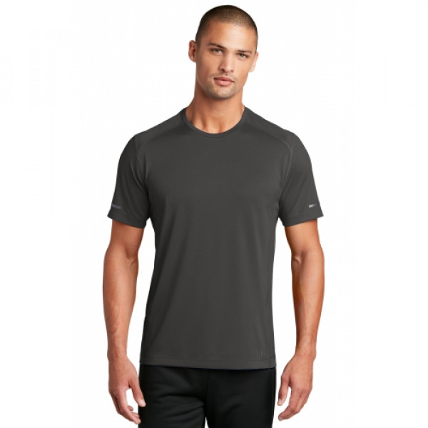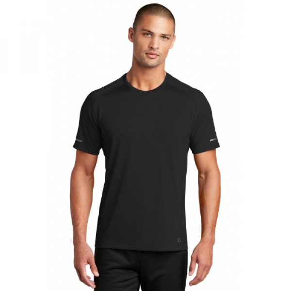 STAY-COOL WICKINGULTRABREATHABLE MESHREFLECTIVE DETAILS::3.2-ounce, 100% poly jacquard jersey with stay-cool wicking technology::OGIO heat transfer label for tag-free comfort::Modified raglan sleeves with coverstitched seams::Black reflective vertical bar heat transfers on sleeves::Black reflective O heat transfer at front left hem