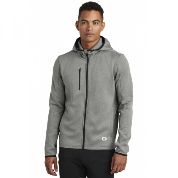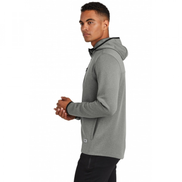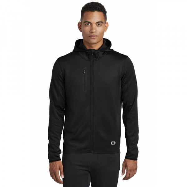 STAY-COOL WICKINGSTRETCHREFLECTIVE DETAILS::95/5 poly/spandex with stay-cool wicking technology::OGIO heat transfer label for tag-free comfort::OGIO embossed neck taping::Black binding around hood and cuffs::Black reverse-coil locking zipper with chin guard::Zippered right chest pocket::Ventilating perforation on center back::Reflective O Endurance on back left shoulder::Front pockets with mesh lining::Thumbholes::Curved back hem::Reflective O on front left hip