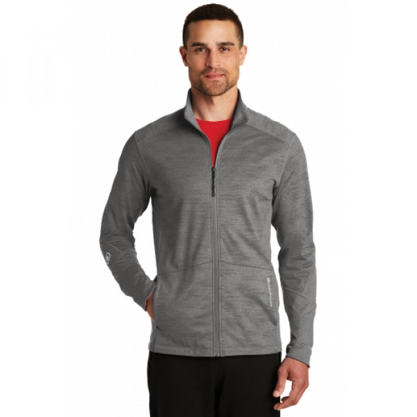::LAYERABLE WARMTH::STRETCH::REFLECTIVE DETAILS::100% poly heather::Interior textured fleece::Reflective OGIO Endurance heat transfer label for tag-free comfort::Zip-through cadet collar with reflective taping and clear silicone zipper pull::Reflective O heat transfer at back neck::Set-in sleeves with shaped cuffs::Slight drop tail hem with Endurance heat transfer at back left panel::Reflective O heat transfer at front right hem