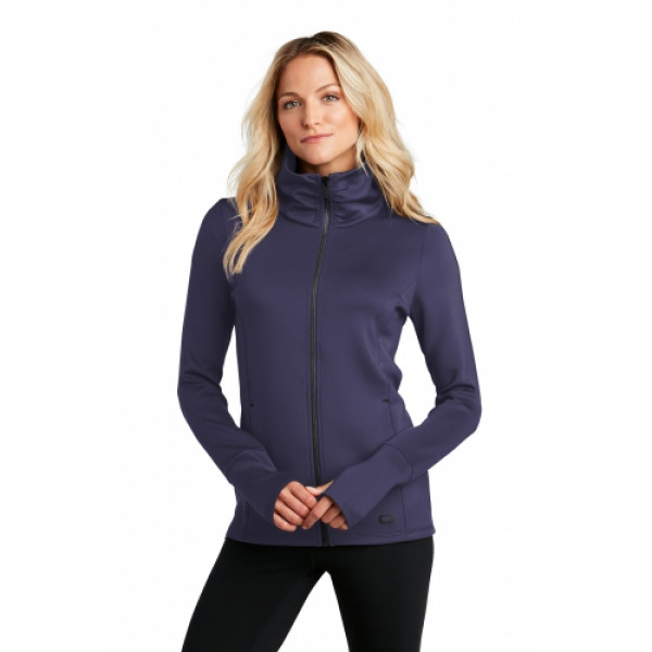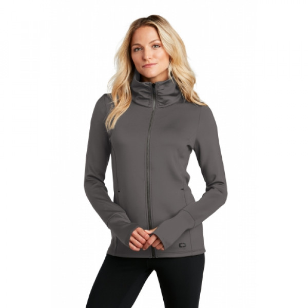 LAYERABLE WARMTHSTRETCHSTAY-COOL WICKINGREFLECTIVE DETAILS::85/15 poly/spandex with stay-cool wicking technology::Reflective OGIO heat transfer label for tag-free comfort::Oversized zip-through cowl neck collar::Front seaming for shaping::Black reflective O heat transfer on back right shoulder::Pleating on back::Metaluxe® zipper::Engraved matte black metal O zipper pull::Black reflective O heat transfer on left pocket