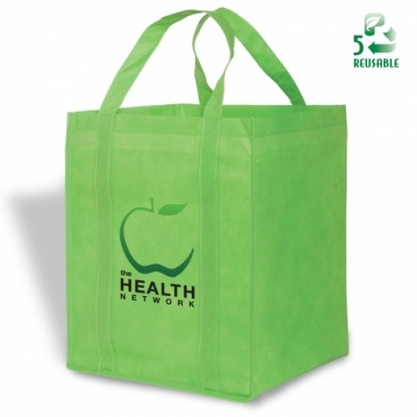 Made from 100 gsm non woven polypropylene, the Enviro-Shopper Non Woven Reusable Grocery Bag is reusable and 100% recyclable. And, it's incredibly functional, too, as the Enviro-Shopper Non Woven Reusable Grocery Bag features 20" handles and a reinforced bottom for added durability. ::Made of 100 grams per square meter non-woven polypropylene::Reinforced bottom and 20" handles.::Hand wash only::Imprinting available on gusset and handles::4 Color Process Imprint is available on orders of 250 pieces or more.