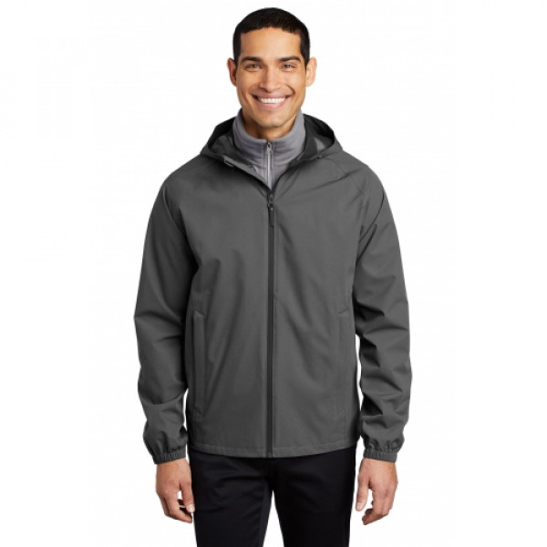 A year-round must-have, this fully seam-sealed 8K/5K waterproof, breathable 2.5-layer jacket has a DWR finish. It packs easily and gives great weather-fighting performance. ::100% polyester shell bonded to a waterproof laminate film with DWR finish::8,000MM fabric waterproof rating::5,000G/M2 fabric breathability rating::Interior grid print::Waterproof center front zipper::Interior storm flap with chin guard::Front zippered pockets::Elastic cuffs