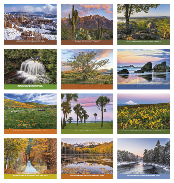 This 12-month calendar features Bible verses from the New International Version, with a funeral pre-planning form.