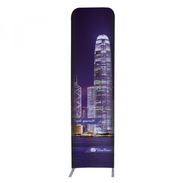 Use this straight wall in a setting with ample display space. This double-sided display is lightweight and stylish.::This display is approximately 90" tall::Artwork is dye sublimated on polyester knit::Double-sided graphic cover is viewable from both the front and back of the display::Joints are labeled for step-by-step frame assembly::Graphic cover slips over the frame like a pillowcase::Fabric contours to the frame for a form-fitted look::Lightweight aluminum frame::Push-button connectors make assembly a snap::Hinge together multiple EuroFit displays with the included EuroFit Connector (US Patent #9637963)::Slim swivel feet allow EuroFit Walls to be paired at angles