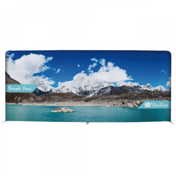 This double-sided display is lightweight and stylish. The 20' Straight Wall is perfect for an eye-popping panoramic.::This display is 20' wide, making it the largest EuroFit Wall we offer::Artwork is dye sublimated on polyester knit::Double-sided graphic cover is viewable from both the front and back of the display::Graphic cover slips over the frame like a pillowcase::Fabric contours to the frame for a form-fitted look::Lightweight aluminum frame::Joints are labeled for step-by-step frame assembly::Push-button connectors make assembly a snap::Hinge together multiple EuroFit displays with the included EuroFit Connector (US Patent #9637963)::Slim swivel feet allow EuroFit Walls to be paired at angles