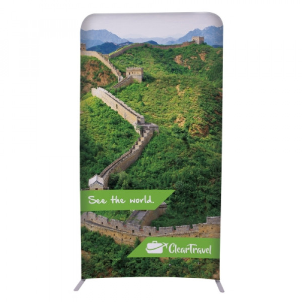 Use this straight wall in a setting with ample display space. This double-sided display is lightweight and stylish.::This display is approximately 90" tall::Artwork is dye sublimated on polyester knit::Double-sided graphic cover is viewable from both the front and back of the display::Graphic cover slips over the frame like a pillowcase::Fabric contours to the frame for a form-fitted look::Lightweight aluminum frame::Joints are labeled for step-by-step frame assembly::Push-button connectors make assembly a snap::Hinge together multiple EuroFit displays with the included EuroFit Connector (US Patent #9637963)::Slim swivel feet allow EuroFit Walls to be paired at angles