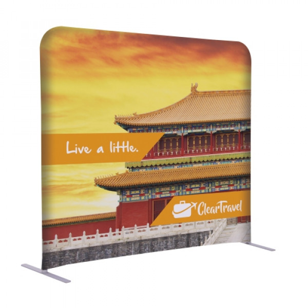 This shoulder-height wall works well in spaces with low clearance. Its hidden hardware and vibrant graphic make this display pleasing to the eye.::This display is approximately 54" tall::Artwork is dye sublimated on polyester knit::Double-sided graphic cover is viewable from both the front and back of the display::Graphic cover slips over the frame like a pillowcase::Fabric contours to the frame for a form-fitted look::Lightweight aluminum frame::Joints are labeled for step-by-step frame assembly::Push-button connectors make assembly a snap::Hinge together multiple EuroFit displays with the included EuroFit Connector (US Patent #9637963)::Slim swivel feet allow EuroFit Walls to be paired at angles