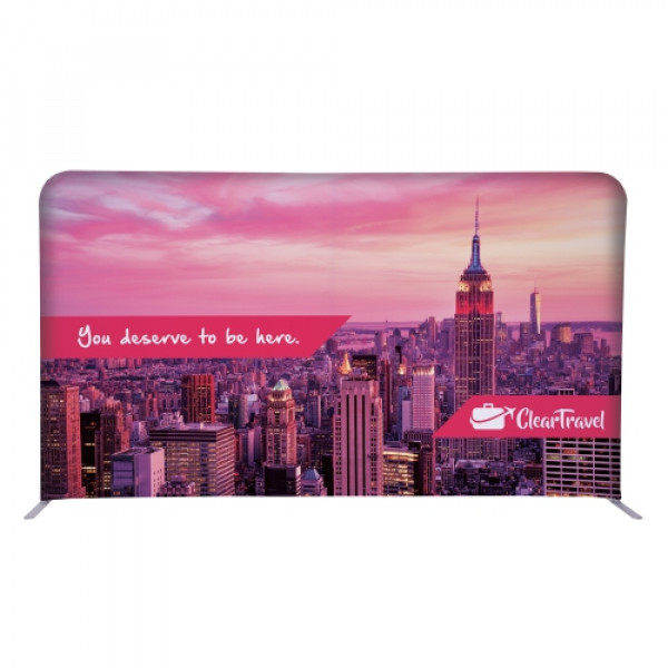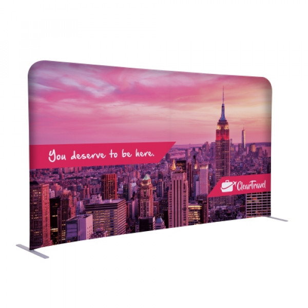 This shoulder-height wall works well in spaces with low clearance. Its hidden hardware and vibrant graphic make this display pleasing to the eye.::This display is approximately 54" tall::Artwork is dye sublimated on polyester knit::Double-sided graphic cover is viewable from both the front and back of the display::Graphic cover slips over the frame like a pillowcase::Fabric contours to the frame for a form-fitted look::Lightweight aluminum frame::Joints are labeled for step-by-step frame assembly::Push-button connectors make assembly a snap::Hinge together multiple EuroFit displays with the included EuroFit Connector (US Patent #9637963)::Slim swivel feet allow EuroFit Walls to be paired at angles