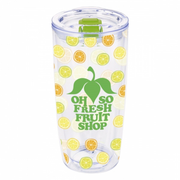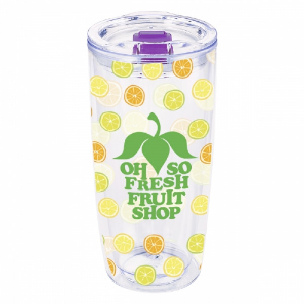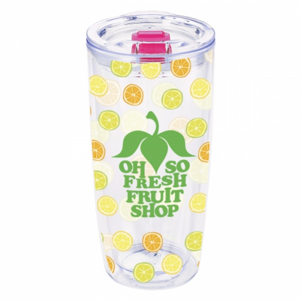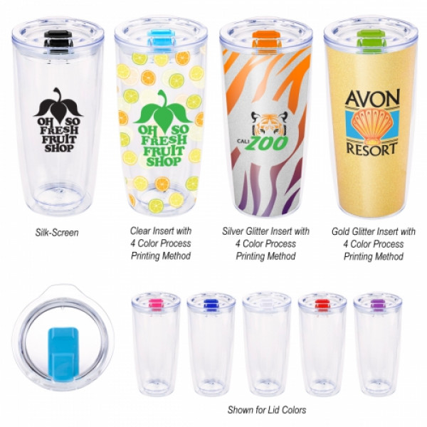 ::Acrylic Outer And Inner::Double Wall Construction For Insulation Of Hot Or Cold Liquids::Insert Decoration Is Inserted Between The Clear Double Walls Of The Tumbler Then ::Ultrasonically Sealed To Provide Double Wall Insulation::Snap-On, Spill-Resistant Thumb-Slide Lid With Rubber Gasket::Meets FDA Requirements::BPA Free::Hand Wash Recommended