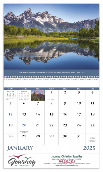 This calendar features Bible verses from the King James version.