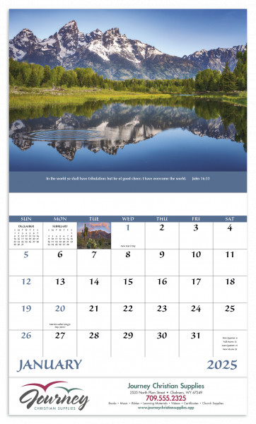 This calendar features Bible verses from the King James version.