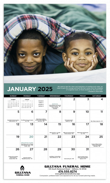 13-Month calendar with December month printed on the backmount This calendar is printed on paper from FSC and SFI certified mills Gloss paper stock with UV coated cover High-quality imagery Top markets: Retail, religious and insuranceDetails