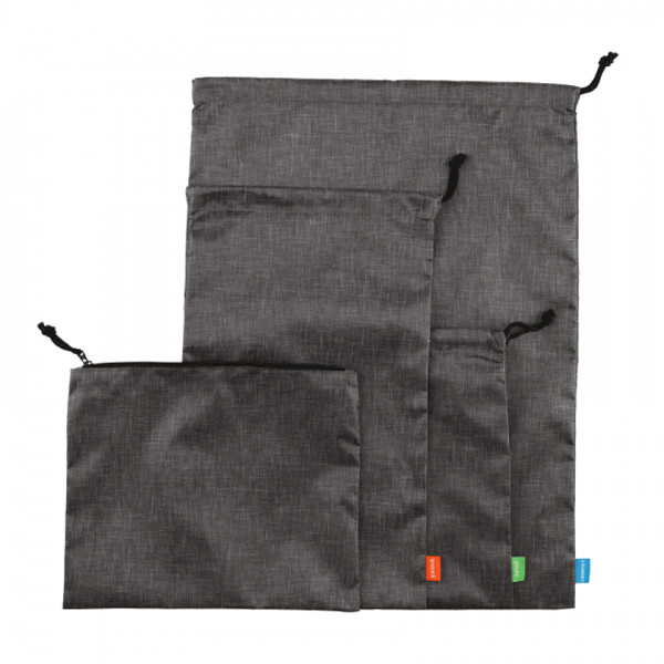 Rethink the way you travel. The Excursion four-piece set includes one zippered carrying bag that doubles as storage, one shoe bag (10"x16"), one laundry bag (15.5"x20.5"), and one stuff bag (10"x11"). Through a partnership with 1% For The Planet, one percent of sales of EcoSmart products will be donated to nonprofits dedicated to protecting the planet.