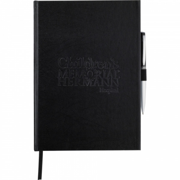 The 7'' x 10'' FSC® Mix Executive Large Bound Journal offers a professional and durable design, perfect for meetings, conferences, or daily note-taking. With its UltraHyde hardcover, ribbon page marker, and elastic pen loop, this journal is built for both style and function. Featuring FSC® Mix paper, it’s an eco-conscious choice that can also be custom-branded or decorated, making it a thoughtful and practical promotional product.