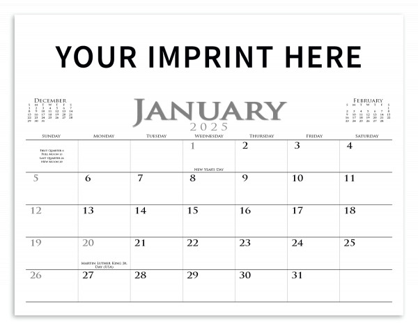The ad imprint shows every month. The calendar grid can start with any month. Grid available in English only.Details