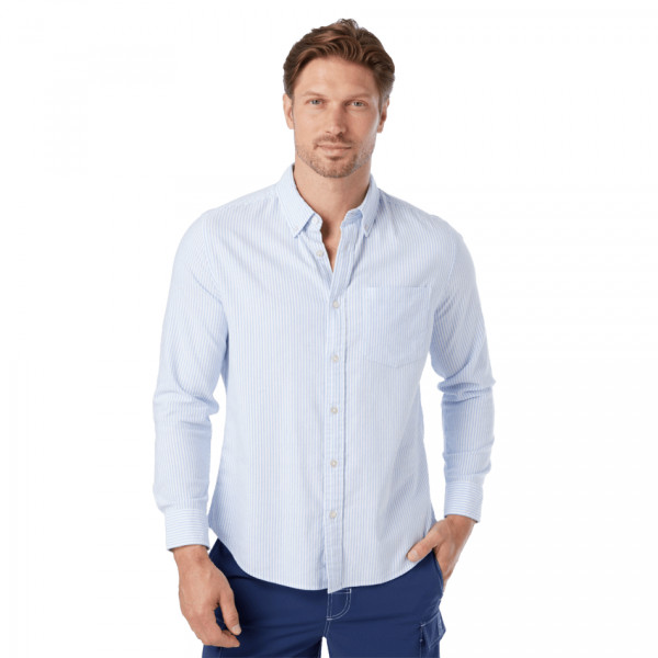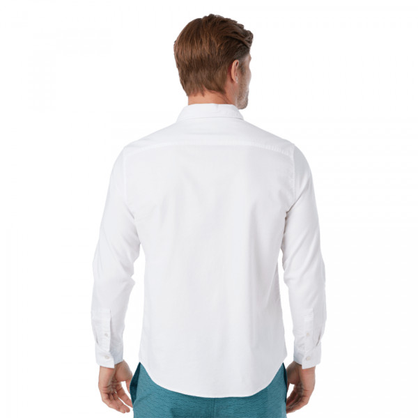 The Salty Oxford Shirt in White from Fair Harbor updates the classic Oxford with a sustainable and relaxed twist. Made from a soft blend of organic cotton, recycled polyester, rayon, and spandex, this shirt delivers a vintage feel with just the right amount of stretch. Designed with a standard fit and breathable fabric, it's perfect for both casual wear and dressier occasions. A go-to shirt that blends timeless design with everyday comfort and conscious craftsmanship.