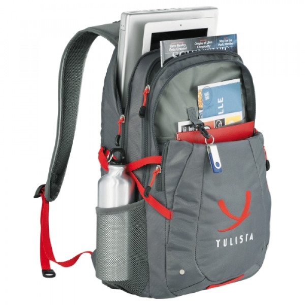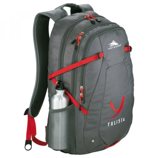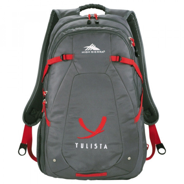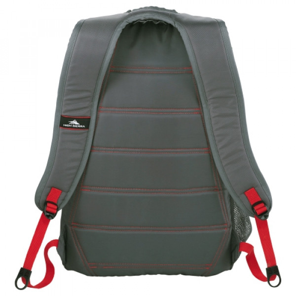 ::The High Sierra® Fallout 17" Computer Backpack features a large multi-compartment design and fully padded Cushion Zone™ computer sleeve that fits most 17 inch laptops. ::An integrated Tech Spot™ sleeve fits most tablets, including an iPad®. ::Comes with a core organizer with multiple pockets and a key fob, as well as a mesh beverage pocket and S-shaped, yolk style padded Vapel™ mesh shoulder straps with media pocket. ::Primary padded back panel. ::Adjustable side compression straps. ::Convenient grab handle. ::Front panel webbing loop for attaching extra gear. ::Includes lifetime warranty.