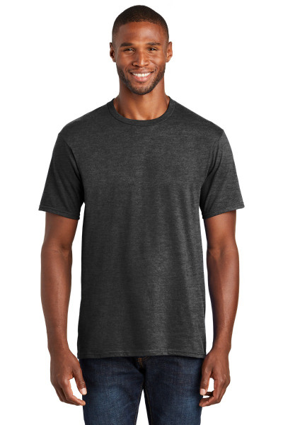 - 50/50 cotton/poly (Dark Heather Grey, Heather Navy)