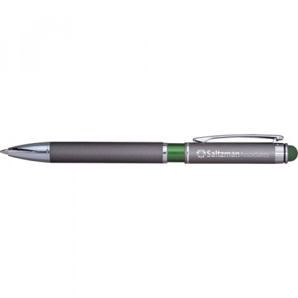 The Farella® Bronze Pen is a sleek executive writing instrument that combines modern functionality with timeless design. Its brushed bronze finish is complemented by shining silver and metallic-colored accents, creating a sophisticated look. The pen features a handy stylus in coordinating colors, enhancing its versatility for both traditional writing and touchscreen use. With ample space for custom decoration, the Farella® Bronze Pen serves as an effective promotional product to showcase your brand.