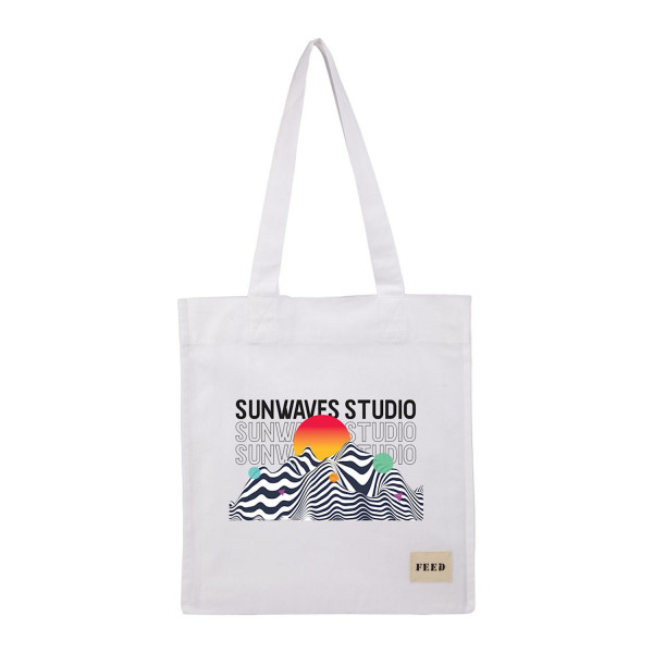 - FEED giveback message screen-printed inside the tote