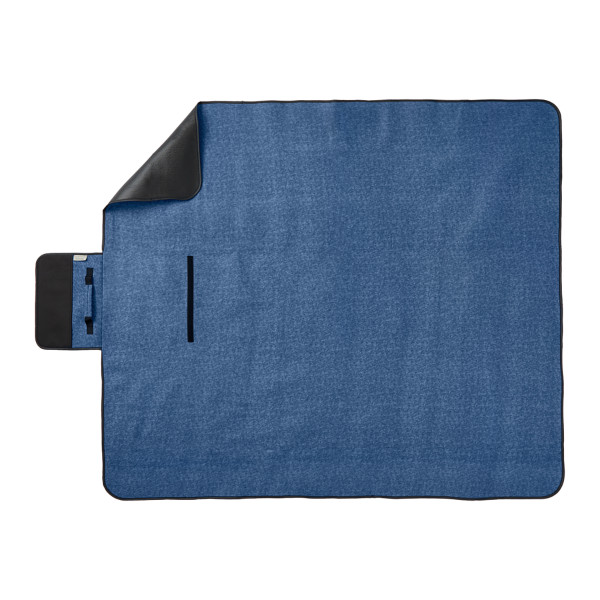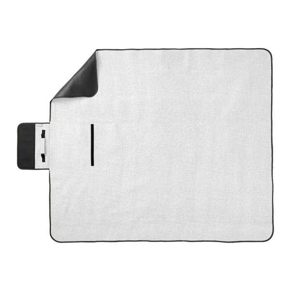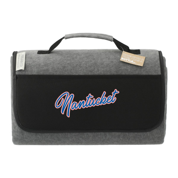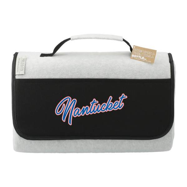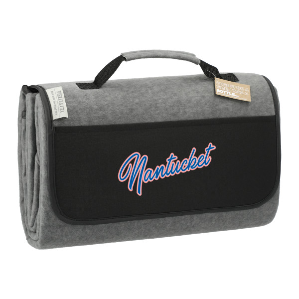 This blanket features a soft fleece backing made from 100% recycled PET materials and a moisture resistant backing.