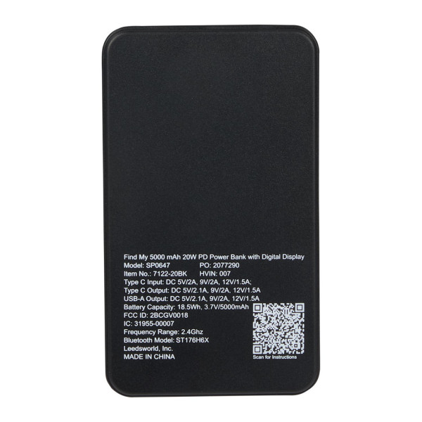 Find My 5,000 mAh 18W PD Power Bank with Digital Display