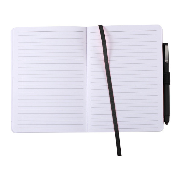 The 5'' x 7'' FSC® Mix Firenze Soft Bound Journal includes a smooth polyurethane, soft cover. This Journal features a color-matching elastic pen loop, elastic closure, and ribbon page marker. The Firenze Soft Bound Journal includes 64 sheets of FSC® Mix white lined paper. Pen not included.
