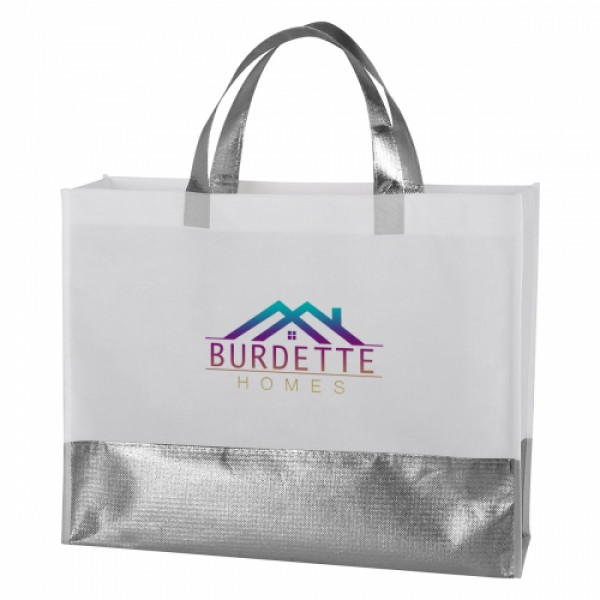 ::Made Of 90 Gram Non-Woven, Coated Water-Resistant Polypropylene::13 ¾" Handles::4 1/8" Gusset::Spot Clean/Air Dry