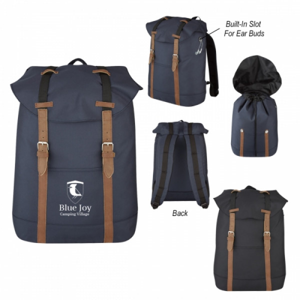 ::Made Of 900D Polyester::Adjustable Padded Shoulder Straps And Web Carrying Handle::Flap Closure Main Compartment With Padded Back And Adjustable Buckles With Magnetic Snap::Drawstring Closure Under The Flap::Front Pocket::Interior Pocket With Hook And Loop Closure And Loop For Attaching Pen Or Keys::Built-In Slot For Earbuds::Spot Clean/Air Dry