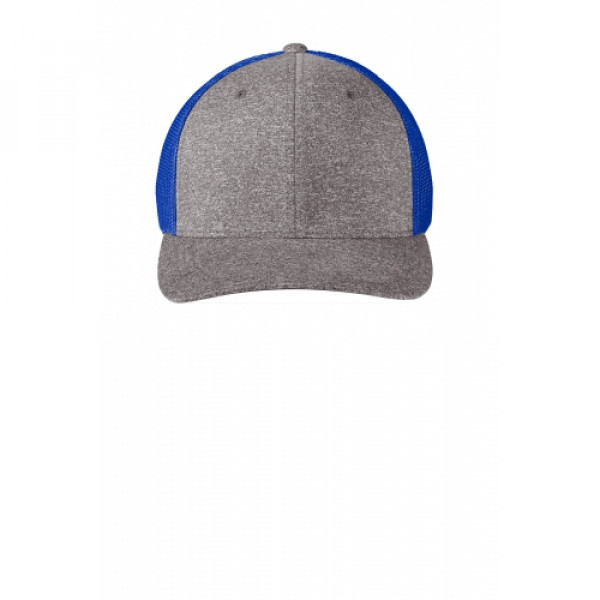 ::Fabric: 92/8 poly/PU spandex jersey front panels; 95/5 poly/PU spandex mesh mid and back panels (Grey Heather), 95/5 poly/PU spandex jersey front panels; 95/5 poly/PU spandex mesh and mid back panels (Dark Charcoal Heather)::Structure: Structured::Profile: Mid::Closure: Stretch fit