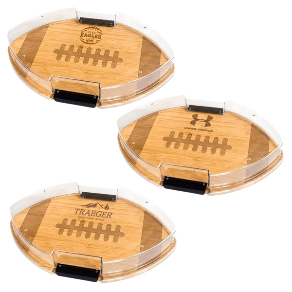 Game day just found its MVP with the Football Flip Serve and Store Board—a versatile essential designed to handle every step of your snack prep and presentation. From slicing and dicing to serving and storing, this all-in-one board keeps the action flowing effortlessly. The smooth bamboo surface provides a reliable workspace for cutting, while its clever design lets you flip the board to serve your favorite appetizers in style. Once the party winds down, simply snap on the durable plastic cover to keep leftovers fresh and ready to go. Made from strong, eco-friendly Moso bamboo, this board offers both sustainability and long-lasting performance, making it a smart choice for repeat use. Whether you're hosting tailgates, gatherings, or casual get-togethers, this promotional product can be custom branded or decorated to showcase your logo while delivering practical value. Easy to maintain and built for convenience, it’s a winning addition to any kitchen or celebration.