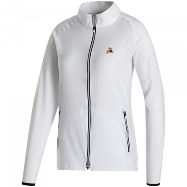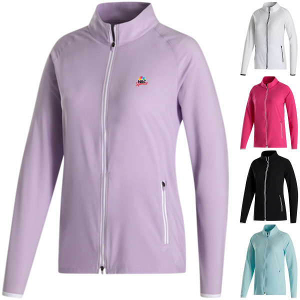 The FootJoy Women's Lightweight Woven Jacket is a versatile outer layer designed for active women seeking comfort, performance, and style. Crafted from a brushed woven performance fabric, this jacket offers breathability and four-way stretch, ensuring ease of movement during various activities. Its Durable Water Repellent (DWR) finish provides protection against light rain and mist, making it suitable for changing weather conditions. The full-zip construction allows for easy layering, while side pockets offer convenient storage and added hand comfort. This jacket serves as an excellent promotional product that can be custom embroidered with your brand's logo, enhancing your corporate identity.