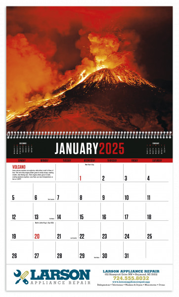 This interesting calendar highlights nature's most unusual phenomena, with spectacular photos and detailed information.