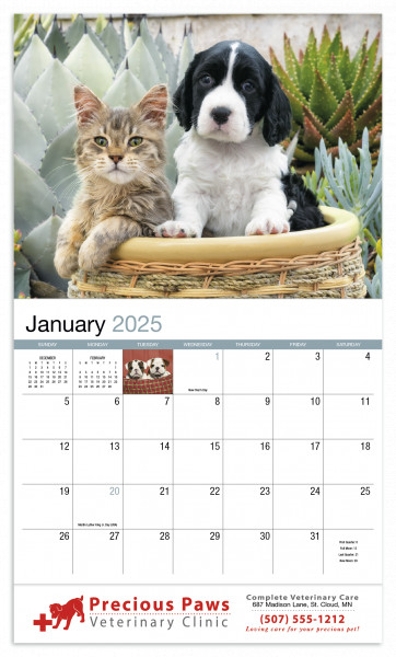 The adorable images of puppies and kittens on this 13-month calendar will make you smile each time you see it. The FSC® label means that the materials used for this product come from well-managed FSC®-certified forests and other controlled sources.