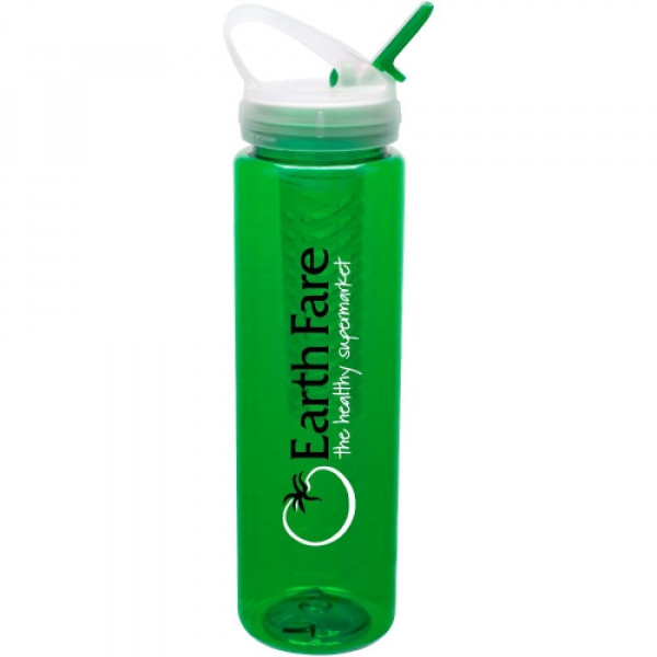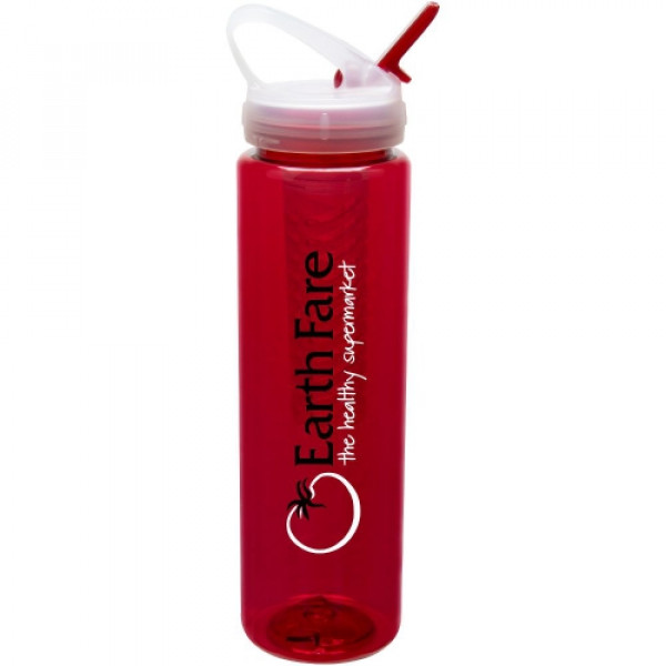 ::Add the flavors of fresh fruit to your water by placing fruit in the container::Tall and slender bottle::Flip spout means no spills when closed::Carabiner-style handle on the lid lets you hook it to a bag or carry with a single finger::Made in the USA::32 ounces of hydration. Fill up twice and you are set for the day!::Hand wash recommended and not intended for microwave use::BPA Free::FDA Approved